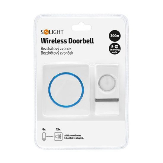 Solight bezdrátový zvonek, bateriový, 200m, bílý