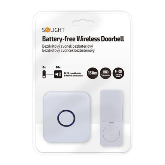 Solight bezdrátový zvonek bezbateriový, do zásuvky, 150m, bílý, learning code