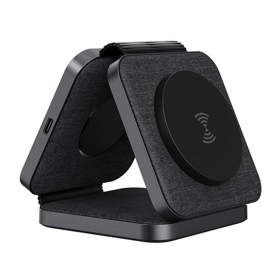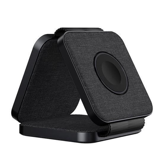 - hlavná nabíjacia plocha pre telefón (až 15 W), výklopná nabíjacia plocha pre Apple Watch (3 W) a sekundárna nabíjacia plocha pre slúchadlá/další telefón (5 W)