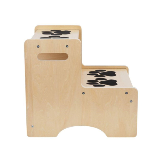 Detské schodíky v prírodnom prevedení, s možnosťou dozdobenia roztomilými tlapičkami (nálepkami), majú v domácnosti všestranné využitie. Drevené schodíky umožnia deťom dosiahnuť do umývadla, na stôl, do regáliku alebo do knižnice. Deti si môžu samy podať kefku na zuby, oblečenie, hračky a tým sa učia samostatnosti. Detské schodíky s protisklzovou spodnou stranou sú bezpečným a ľahko prenášateľným pomocníkom do domácnosti.