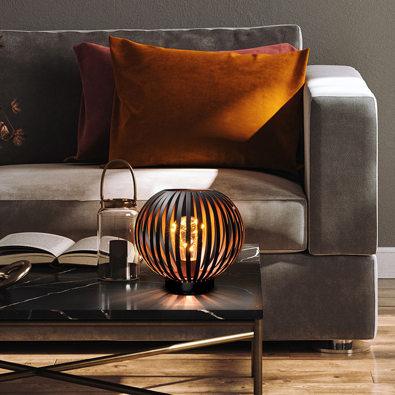 - dekoratívna kovová lucerna s žiarovkou s micro LED