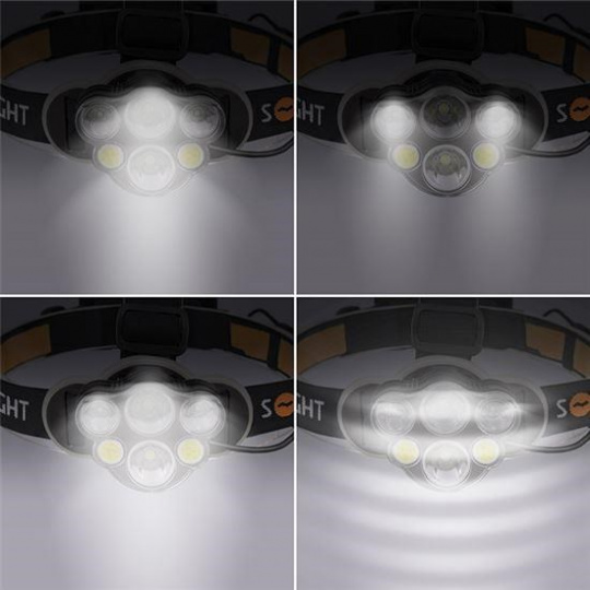 Solight LED čelová nabíjecí svítilna, 550lm, Li-Ion, USB