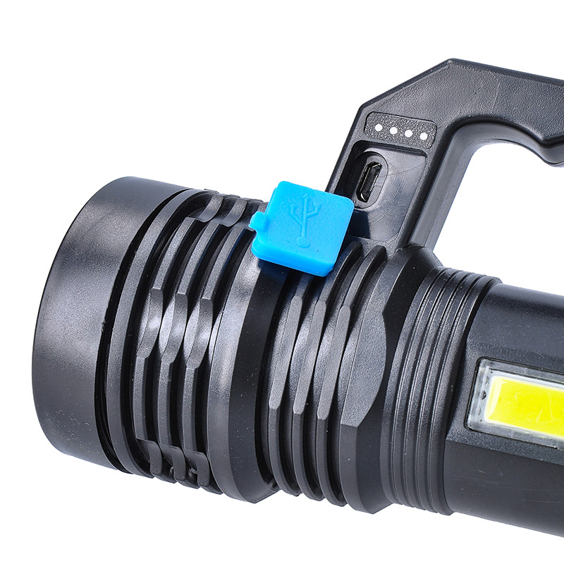 - LED ručná dobíjacia svietidlo s predným a bočným zdrojom svetla