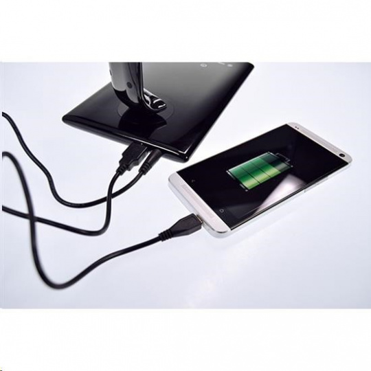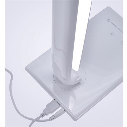 stolná lampička s LED svetelným zdrojom možnosť voľby 5 farieb svetla – teplá, neutrálny biely, biela a studená biela (3000K-6000K) stmievateľná - plynulá regulácia jasu dotykové spínanie maximálne flexibilná - ohybné rameno, otočná základňa a náklopná hlava príkon: max. 12W svetelné tok: max. 700lm USB napájací port pre nabíjanie telefónov (5V, 1000mA) USB kábel súčasťou protisklzová základňa s dotykovým vypínačom farba: biely lesk napájanie: AC 100-240V dĺžka napájacieho kábla: 140cm rozmery: cca 420 x 360 x 125mm energetická trieda: A+ LED zdroj nemožno meniť materiál: ABS