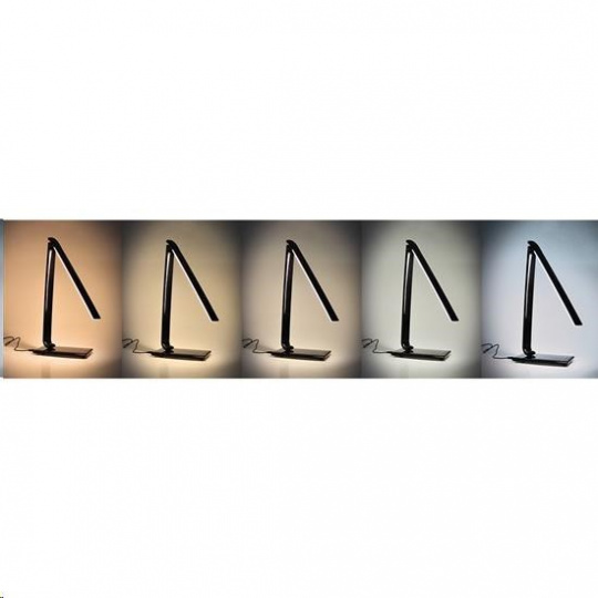 Solight LED stolní lampička stmívatelná, 12W, volba teploty světla, USB, černý lesk