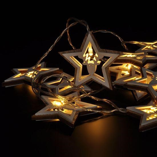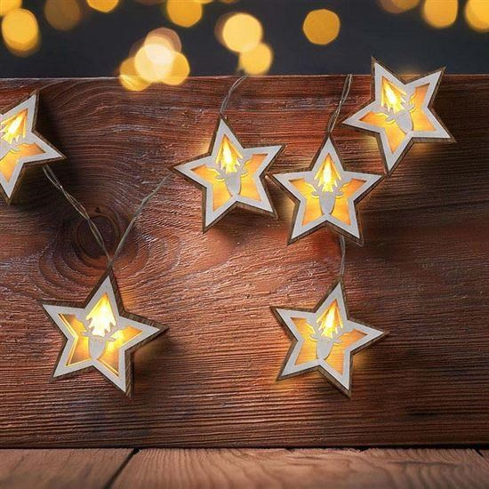 Solight LED vánoční řetěz hvězdy, 10x LED, dřevo, 1,5m, 2x AA