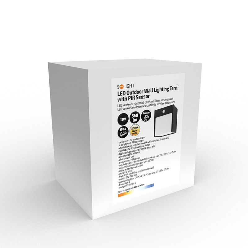 .Solight LED venkovní nástěnné osvětlení Terni, 12W, 560lm, 3000K, PIR sensor