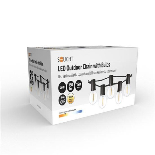 Solight LED venkovní řetěz s žárovkami, 25 žárovek, 15m+5m, 20W, teplá bílá