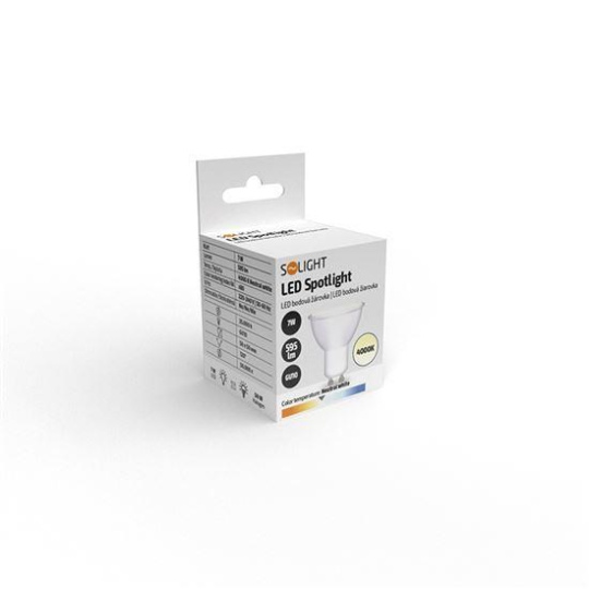Solight LED žárovka, bodová , 7W, GU10, 3000K, 595lm, bílá