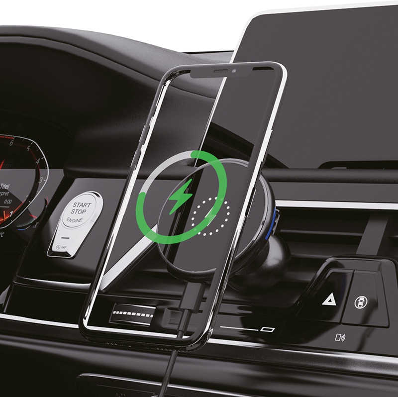 - Qi bezdrôtové nabíjanie do auta s maximálnym výkonom 15W