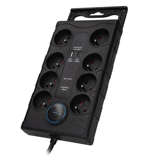 Spoľahlivá prepaťová ochrana s integrovanou USB nabíjačkou chráni vaše zariadenia pred náhlymi výkyvmi napätia. Vďaka ôsmim zásuvkám a dvom USB portom je ideálna do domácnosti aj kancelárie. S maximálnou záťažou až 3680 W zvládne aj energeticky náročnejšie spotrebiče.