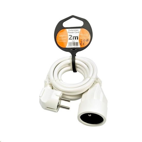 Kompaktný biely predlžovací kábel s dĺžkou 2 metre a jednou zásuvkou je ideálny pre jednoduché predĺženie elektrickej energie v domácnosti, kancelárii alebo dielni. Vhodný na pripojenie samostatného zariadenia mimo dosah pevnej zásuvky.