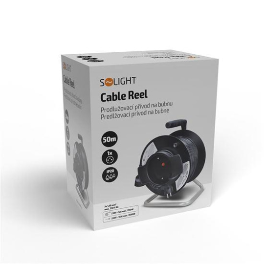 Solight prodlužovací přívod na bubnu, 1 zásuvka, 50m, černý kabel, 3x 1,5mm2