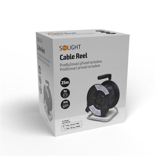 Solight prodlužovací přívod na bubnu, 4 zásuvky, 25m, černý kabel, 3x 1,5mm2