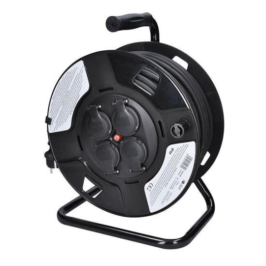 Predlžovací kábel na navíjacom bubne s dĺžkou 50 metrov a štyrmi zásuvkami je ideálny pre použitie vonku, na stavbách alebo v dielňach. Gumený kábel zabezpečuje odolnosť proti poveternostným podmienkam a mechanickému namáhaniu. Produkt je navrhnutý pre bezpečné a spoľahlivé pripojenie stavebných, záhradných aj menej náročných priemyselných zariadení.