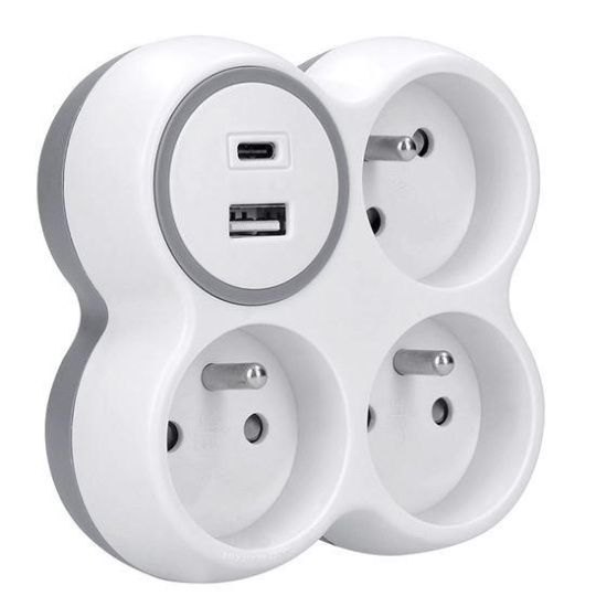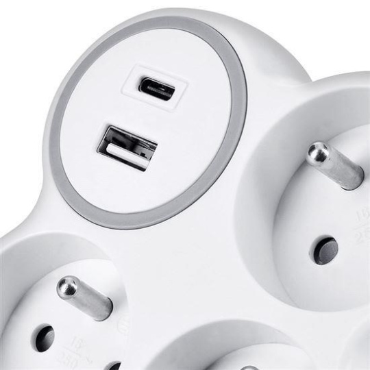 Solight rozbočka, 3x 15A, USB nabíječka A+C, bílá-šedá