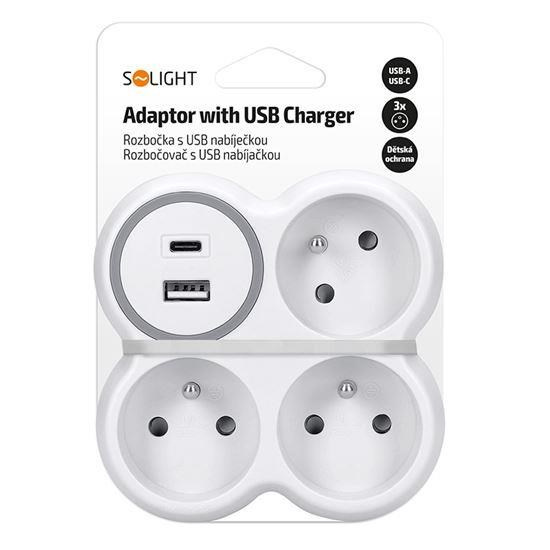 Solight rozbočka, 3x 15A, USB nabíječka A+C, bílá-šedá