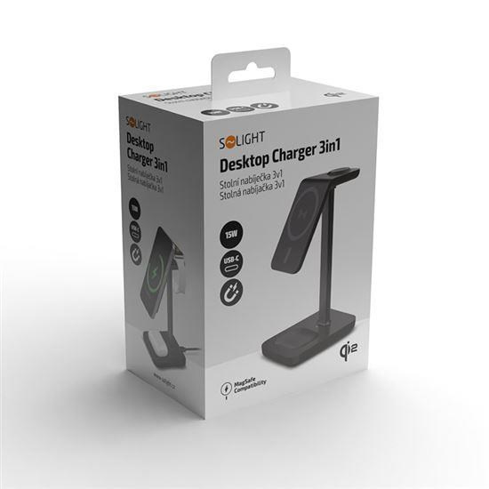 Solight stolní nabíječka 3v1, Qi2, MagSafe kompatibilní