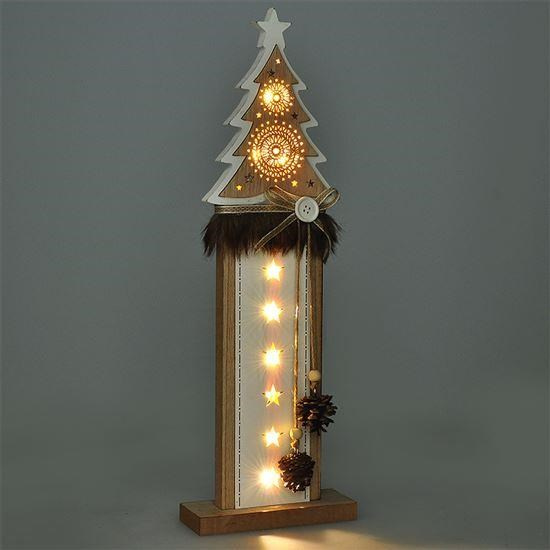 Solight vánoční LED dřevěná dekorace, stromek, 2x AA
