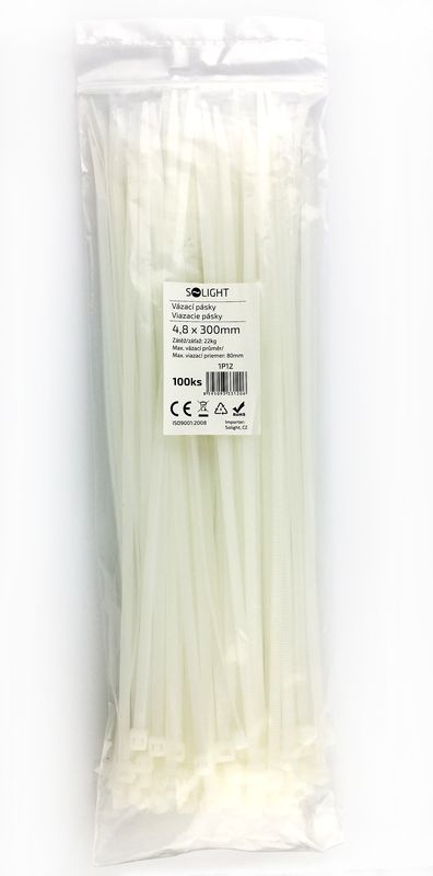 .Solight vázací nylonové pásky, 4,8 x 300mm, natural, 100ks