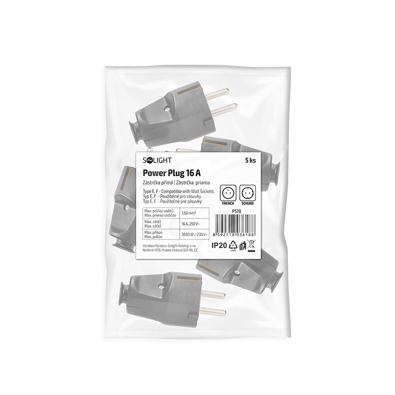Solight zástrčka přímá, IP20, černá