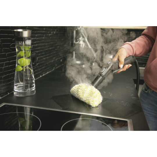Parný čistič SC 4 EasyFix ponúka vysokú úroveň komfortu a môže sa chváliť integrovanou priehradkou na kábel, priehradkou na príslušenstvo a parkovacou polohou pre podlahovú hubicu. Podlahová hubica EasyFix zaručuje vynikajúcu ergonómiu vďaka flexibilnému klbu, zatiaľ čo lamelová technológia zabezpečuje žiarivo čisté výsledky. S praktickým systémom háčikov a slučiek je možné podlahovú utierku z mikrovlákna rýchlo a ľahko pripevniť k podlahovej hubici a opäť odňať, bez toho aby prišla do kontaktu so špinou. Pomocou dvojstupňovej regulácie pary je možné intenzitu pary prispôsobiť povrchu a nečistotám. Vďaka širokému príslušenstvu sa dlaždice, varné dosky, odsávače pár a dokonca aj tie najmenšie škáry rýchlo rozžiaria ako nové - odstránite aj tie najodolnejšie nečistoty. Trvalo plniteľná a vyberateľná nádrž na vodu umožňuje neprerušené čistenie. SC 4 EasyFix čistí bez použitia chemikálií a je možné ho prakticky použiť kdekoľvek v domácnosti. Dôkladné čistenie parným čističom Kärcher odstráni 99,999 % koronavírusov* a 99,99 % všetkých bežných domácich baktérií** z typických tvrdých povrchov v domácnosti.
