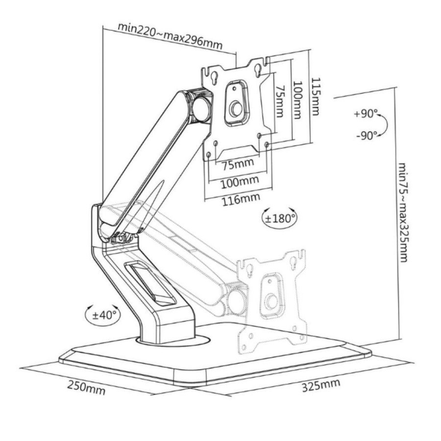 Ergonomická stolová stojan na monitor Fiber Mounts FRIOS Polohovateľný stolový stojan na monitory 15-32" pre ergonomiu Vašej práce, nastaviteľná výška, otáčanie do strán, veľký rozsah naklonenia, VESA 75x75 a 100x100, nosnosť 10kg Designový stolový stojan pre skvelú ergonómiu pri práci s monitormi. Stojan je ideálny na monitory s uhlopriečkou 15-32", umožňuje nastavenie výšky 75-325mm, naklonenie v širokom rozsahu až 90°, otáčanie na obe strany +/- 40° a podporuje aj funkciu pivot. Konštrukcia je upravená pre vedenie káblov. Rozmery stabilnej podstavy 325x250mm. Podporuje VESA štandardy 75x75 a 100x100 a maximálna záťaž je 10kg. Rukoväť obsahuje plynovú pružinu pre nastavenie podľa hmotnosti monitora, preto je výškové polohovanie mimoriadne jednoduché a rýchle. Stojan je možné použiť aj na menšie televízory s uhlopriečkou do 32". Držiak je vhodný aj pre používanie dotykových monitorov. Stolový ergonomický stojan na monitory 15-32" jednoducho polohovateľný Fiber Mounts FRIOS Technické údaje: nosnosť 10kg podpora VESA štandardov 75x75 a 100x100 vhodný na monitory a menšie televízory 15-32" vynikajúca ergonómia výškové polohovanie 75-325mm otáčanie do strán +/- 40° naklonenie +/- 90° pivot +/- 180° rozmery podstavy: šírka 325mm, hĺbka 250mm plynová pružina pre jednoduché a rýchle nastavenie výšky veľmi pekný dizajn vynikajúca kvalita, skvelá stabilita, jednoduchá inštalácia systém pre vedenie káblov farebné vyhotovenie čierne záruka 3 roky Ergonomický stojan na monitory Fiber Mounts M8C95Podstavec - stojan na monitor, ergonomický, ľahko polohovateľný Fiber Mounts M8C95 Monitorový stojan podporuje VESA štandardy: VESA 75x75 VESA 100x100 Inovatívny držiak monitora so stojanom je navrhnutý pre jednoduché používanie klasických, zakrivených alebo dotykových monitorov. Vďaka tomuto držiaku si vytvoríte ergonomický pracovný priestor doma aj v kancelárii. Držiak monitora je vhodný pre monitory alebo televízory s uhlopriečkou od 15" do 32" so štandardom VESA s rozmermi 75x75 alebo 100x100 a hmotnosťou do 10 kg. Vďaka širokým možnostiam nastavenia môžete monitor nastaviť v ideálnom uhle.