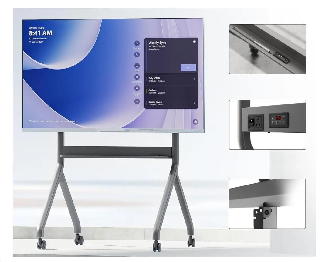 Kvalitný, veľmi pekný pojazdný televízny stojan s elektrickým pohonom na úpravu výšky obrazovky od 1500 mm do 1750 mm. Stojan má policu na príslušenstvo 962x99 mm s integrovaným ovládacím panelom, 4 otočné pojazdové kolieska s aretáciou a držiak TV s podporou VESA 200x200 až 900x600. Súčasťou balenia je aj diaľkové ovládanie. Vynikajúca oceľová konštrukcia s nosnosťou 90,9 kg zabezpečuje vynikajúcu pevnosť, stabilitu a odolnosť. Na stojan poskytujeme záruku 3 roky. Stojan na interaktívnu tabuľu / televízor / dotykovú obrazovku / monitor NB P220 Popis: Univerzálny mobilný stojan pre stredne veľké a veľké obrazovky Perfektné riešenie pre interaktívne tabuľe a multimediálne obrazovky Široká, stabilná základňa s ľahkým prístupom k dotykovým obrazovkám Elektrické nastavenie výšky obrazovky Kvalitné materiály, veľmi pevná a odolná konštrukcia Polica na príslušenstvo s ovládacím panelom Podpora štandardu VESA Jednoduchá a rýchla montáž Ideálne do konferenčných miestností, škôl, na výstavy, prezentácie, prednášky alebo na súkromné použitie Štyri otočné kolieska s funkciou aretácie Vysoká nosnosť, skvelá stabilita, tichý a spoľahlivý motor Farebné prevedenie grafit Elektrický stojan na multimediálne tabule a multimediálne dotykové monitory NB P220 Technické údaje: Nosnosť 90,9 kg Pre obrazovky 60" - 100" Podpora VESA štandardov 200x200 až 900x600 Výškové nastavenie v rozsahu 150 ~ 175 cm Otočné kolieska s priemerom 75 mm s funkciou aretácie Pevná oceľová konštrukcia Spodná polica na príslušenstvo s ovládacím panelom, rozmery: 962 x 99 mm Dálkové ovládanie Výkonný motor 75W Napájanie 240V / 110V Povrchová úprava: práškový náter Farba: grafitová Záruka 3 roky