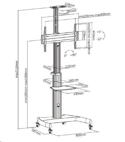 Stojan na Tv a monitory Fiber Mounts M80C1 Stojan na obrazovky 32-70", výškové nastavenie, náklon, pivot, police, pojezd Kvalitný stojan na uchytenie ako televízorov tak aj monitorov s uhlopriečkou 32-70" a hmotnosťou až 50kg. Stojan je plne nastaviteľný - výškovo, náklon obrazovky, funkcia pivot (otočenie obrazovky z horizontálnej do vertikálnej polohy), pojazdný s aretáciou. Konštrukcia stojanu má systém pre vedenie káblov. Televízne stojany Fiber Mounts M80C1 dodávame vrátane police na príslušenstvo (nosnosť 5kg) a hornej police (nosnosť 5kg) - obe police sú odnímateľné. Vďaka veľmi peknému dizajnu a výbornej cene sa stojan stal veľmi obľúbeným ako pre komerčné účely (hotely, firmy, prezentácie, výstavy, showroomy, kancelárie, konferencie), tak aj pre domácnosti (obývacie izby, spálne, detské izby, pracovne). Veľmi kvalitný a tiež pekný stojan na televízie aj monitory 32-70", výškové nastavenie, náklon, pojezd, pivot, police - stojan tv Fiber Mounts M80C1 Technické údaje: nosnosť 50kg stojan podporuje VESA štandardy 200x200 až 600x400 ideálny na Tv a monitory s uhlopriečkou 37-70" nastaviteľná výška 1200mm až 1600mm (výška od podlahy po stred televízora) funkcia PIVOT: možnosť pretáčania obrazovky z horizontálnej do vertikálnej polohy možnosť náklonu obrazovky +5° až -12° súčasťou balenia polička na príslušenstvo: rozmery 430x335mm, nosnosť 5kg súčasťou balenia polička na kameru alebo projektor: rozmery 285x150mm, nosnosť 5kg obe police sú výškovo nastaviteľné a odnímateľné konštrukcia prispôsobená pre možnosť skrytého vedenia káblov stabilná a bezpečná podstava s rozmermi 800x687mm pojezdové kolieska s brzdou na zaistenie konštrukcia z hliníka profesionálna kvalita farebné prevedenie strieborné, podstava čierna záruka 3 roky Televízny stojan výbornej kvality a krásneho dizajnu pre výstavy, konferencie, prednášky, firemné účely, hotely, ale aj do obývacích izieb namiesto televízneho stolíka - stojan Fiber Mounts M80C1 Profesionálny stojan na Tv a monitory Fiber Mounts M80C1 podporuje VESA štandardy pre uchytenie Tv a monitorov: VESA 200x200 VESA 300x200 a 200x300 VESA 300x300 VESA 400x200 a 200x400 VESA 400x300 a 300x400 VESA 400x400 VESA 600x400