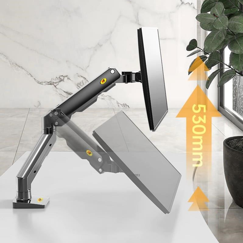 Držiak na monitor TV NB G50 Profesionálny stolový držiak na širokouhlý monitor alebo All in One PC 27-45", otočný +/-180°, sklopný +60°/-15°, nastaviteľná výška od stola 190-475mm, nastaviteľná vzdialenosť 0-640mm, 1x port USB, 2 typy stolových úchytov, systém vedenia káblov, VESA štandardy 75x75 a 100x100, nosnosť 16kg Jeden z najkvalitnejších stolových držiakov na zaveste širokouhlých monitorov alebo All in One PC - profesionálny, kvalitná konštrukcia, dizajn dôsledne spracovaný do detailu a veľmi jednoduché polohovanie. Držiak odporúčame aj náročným zákazníkom, do vytížených prevádzok, kancelárií alebo showroomov. Svoje uplatnenie nájde na každom stole. Držiak je ideálny na širokouhlé aj klasické monitory, All in One PC alebo televízory s uhlopriečkou 27-45", u širokouhlých monitorov môže byť uhlopriečka aj väčšia. Podmienkou je hmotnosť v rozmedzí 5-16kg, pri ľahších obrazovkách nebude možné výškové polohovanie. Držiak podporuje VESA 75x75 a 100x100, v prípade potreby ponúkame aj rozšírenie na 200x100, 100x200 a 200x200. Kompletná polohovateľnosť: otáčanie +/-180°, naklápanie +60°/-15°, jednoduché nastavenie výšky vďaka plynovému piestu od 195mm až do 475mm, nastavenie vzdialenosti od úchytu 0-640mm, funkcia pivot, port USB, dôsledné vedenie káblov, 2 typy stolových úchytov. Profesionálny stolový držiak na širokouhlé monitory a All in One PC NB G50 Technické údaje: minimálna hmotnosť monitoru alebo TV 5kg maximálna hmotnosť monitoru alebo TV 16kg podporuje VESA štandardy 75x75 a 100x100 odporúčaná uhlopriečka monitoru TV 27" až 45" ideálny na širokouhlé monitory, zobrazovacie zariadenia, All in One PC alebo televízory otáčanie do strán +/- 180° naklápanie +60° / -15° nastavenie výšky od stolovej dosky 195mm až 475mm výškové polohovanie 280mm nastavenie vzdialenosti od stolného uchytenia 0-640mm funkcia pivot - horizontálne alebo vertikálne otáčanie obrazovky 1x port USB na základni držiaka systém vedenia káblov 2 typy stolových úchytov (na okraj alebo cez otvor do priestoru) farebné prevedenie čierne záruka 5 rokov Profesionálny stolový držiak na širokouhlý monitor NB G50 Stolový držiak na širokouhlé monitory TV NB G50 podporuje VESA štandardy: VESA 75x75 VESA 100x100