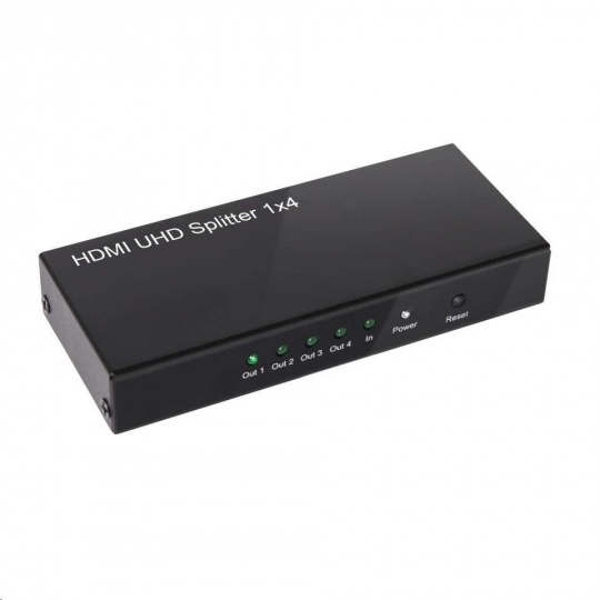 SenseVision HDMI ™ 2.0 UHD 4K60Hz Hub 4 port je vysoko výkonný a malý rozbočovač HDMI ™ 2.0 UHD s jedným vstupom a štyrmi výstupmi. Má matný čierny kovový plášť, ktorý je veľmi silný a robustný. Ideálny asistent ako doma, tak i na pracovisku. Tento rozbočovač HDMI ™ 2.0 UHD prenáša video vo vysokom rozlíšení až v 4k @ 60Hz a digitálny zvuk zo vstupného zdroja do ľubovoľného zo štyroch pripojených (4K UHD) televízorov, monitorov alebo projektorov.