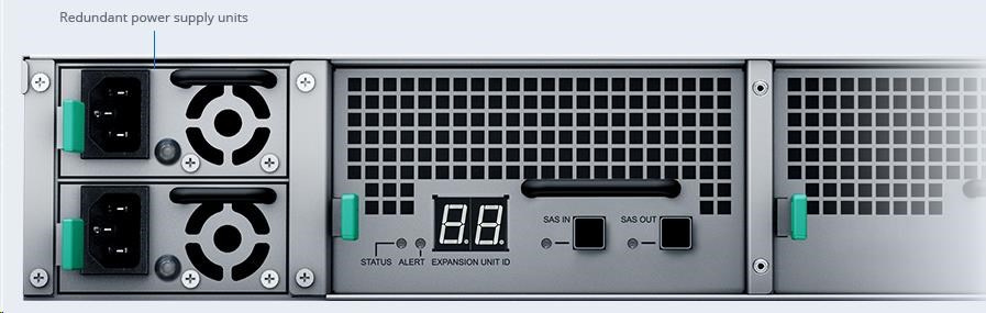 rozširujúca jednotka Synology RX1222sas umožňuje bezproblémové rozšírenie serverového úložiska Synology v racku. Jednoducho ho pripojte pomocou priloženého rozširujúceho kábla, pridajte až 12 pozícií pre disky SAS/SATA a začnite využívať komplexné možnosti správy zväzkov v aplikácii Synology DiskStation Manager, aby ste okamžite využili novú kapacitu.