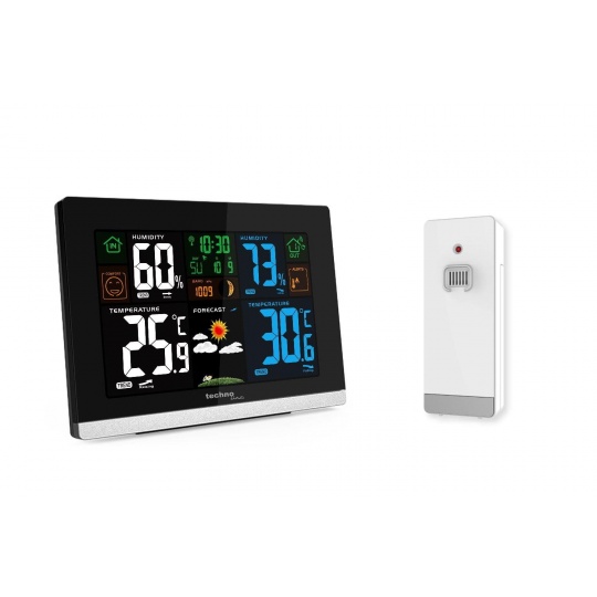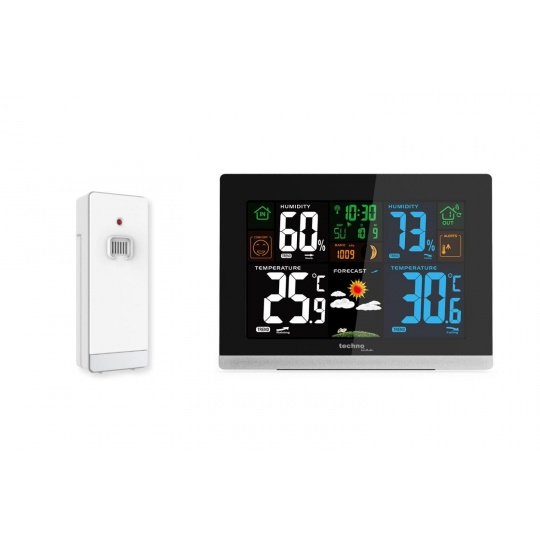 - farby displeja: čas, dátum zelená, barometrický tlak oranžová, vnútorná teplota a relatívna vlhkosť biela, vonkajšia teplota a relatívna vlhkosť modrá