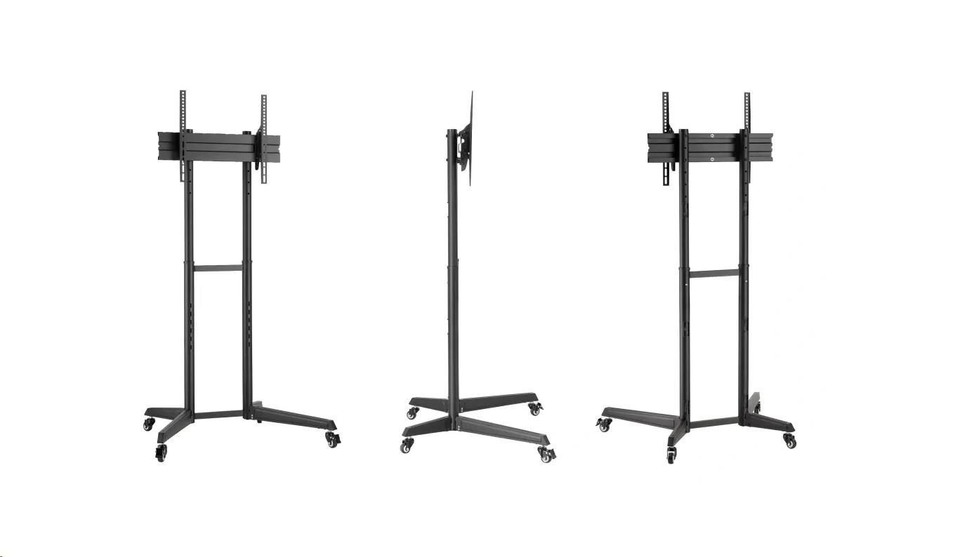 Tv stojan s kolieskami, nastavením výšky a náklonu, na televízie 37" - 70", výška 1285 / 1340 / 1395 / 1450 mm, náklon +5° / -12°, kolieska s aretáciou, podstava 871x678 mm, systém pre vedenie káblov, inštalačný materiál, podporuje štandardy VESA 100x100 až 600x400, nosnosť 50 kg Kvalitný stojan na televízie a monitory s naklápateľnými kolieskami a nastavením výšky Fiber Mounts LUTAR-1 Potrebujete dať televíziu alebo monitor na pojazdný stojan a nechcete míňať veľa peňazí? Chcete mať možnosť upraviť si výšku obrazovky a zmeniť uhol sklonu? Tak v tom prípade pre vás máme skvelé riešenie: televízny stojan Fiber Mounts LUTAR-1, ktorý splní všetko na 100%. Pojazdný stojan s kvalitnými kolieskami s aretáciou, s výbornou stabilitou, ktorý podporuje štandardy VESA od 100x100 do 600x400 a spoľahlivo unesie zariadenie s hmotnosťou až 50 kg vám umožní upraviť výšku aj náklon obrazovky. Konštrukcia umožňuje skryté vedenie káblov. Kvalitná vypalovaná čierna farba. V balení nájdete montážny materiál. Na stojan poskytujeme záruku 5 rokov. Pojazdný stojan s nastavením výšky a náklonu TV / monitoru Fiber Mounts LUTAR-1 Technické údaje: nosnosť 50 kg podpora VESA 100x100 až 600x400 držiak na televízie / monitory 37" - 70" nastaviteľná výška 1285 mm / 1340 mm / 1395 mm / 1450 mm nastavenie náklonu obrazovky +5° / -12° podstava 871x678 mm pojezdové kolieska s aretáciou systém pre skryté vedenie káblov kvalitná konštrukcia farebné vyhotovenie čierne záruka 5 rokov