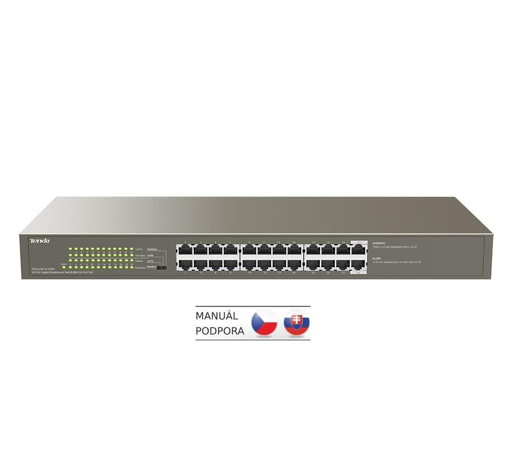 Tenda TEG1124P-24-250W - PoE AT Switch 235Watt, 24xRJ45 Switch s 24x 10/100/1000 Mbps PoE, Kov