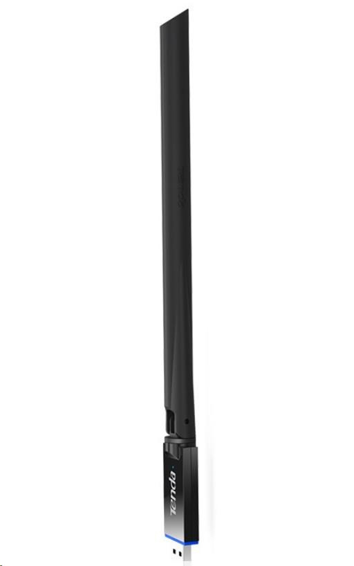 Bezdrôtový Wi-Fi 6 USB adaptér U11 Pro spoločnosti Tenda Technologies vás už na prvý pohľad zaujme veľmi výkonnou anténou s ziskom 6 dBi, vďaka ktorej je dosah Wi-Fi pripojenia naozaj maximálny. Podporuje štandard 802.11ax/b/g/n v pásme 2,4 a 5 GHz, ktorý umožňuje pri komunikácii rýchlosťou až 886 Mb/s (2,4GHz: 286 Mb/s, 5GHz: 600 Mb/s).