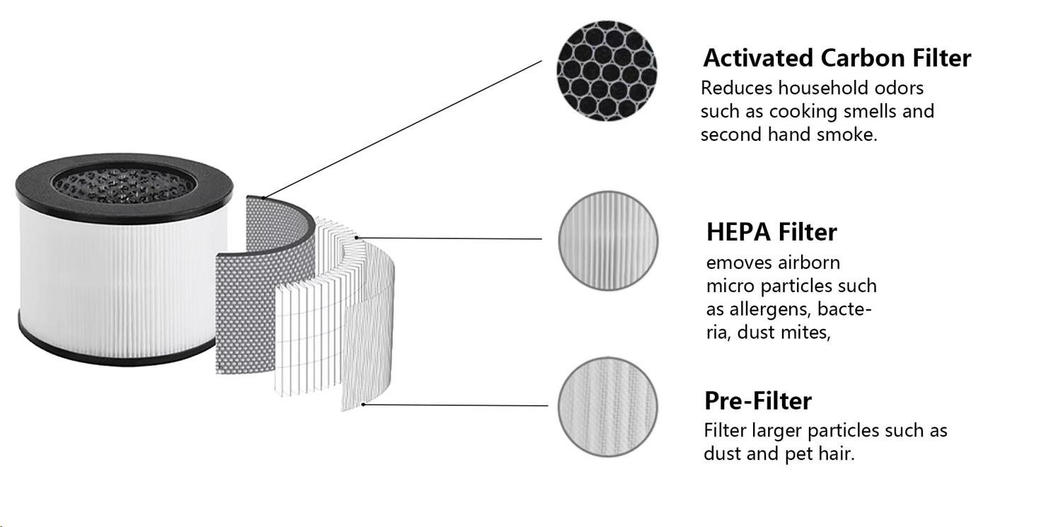 HEPA je skratka, ktorá znamená High-Efficiency Particulate Air. Ide o vrstvený filter, ktorý zachytáva častice zo vzduchu pri prechode čističom vzduchu. Rýchlosť odstraňovania menších častíc z prúdu vzduchu do 0,3 mikrónu môže byť až 99 %. Môže drasticky obmedziť šírenie alergenov a baktérií v prúde vzduchu, ako je peľ, smog a víry. Filter HEPA bol pôvodne vyvinutý pre NASA a bol široko používaný v nemocniciach, aby bol vzduch čistý a neškodný.