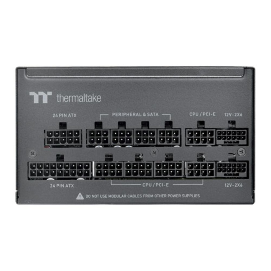 Toughpower PT 1200W Platinum je kompatibilný s ATX 3.1, má certifikáciu 80 PLUS Platinum a podporuje nativné PCIe Gen 5.1 (12+4pin) pre napájanie novej generácie grafických kariet. Poskytuje 1200 W nepřetržitého výkonu pri 40 °C.