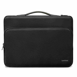 Univerzálna taška Tomtoc je síce dimenzovaná pre 16“ MacBook Pro, avšak vyhovuje väčšine zariadení o veľkosti 16 palcov a menej. Vďaka nenápadnej čiernej farbe a nadčasovému dizajnu sa hodí ku obleku aj voľnočasovému outfitu. Okrem veľkej kapsy na notebook obsahuje priestrannú prednú kapsu s dôsledným členěním pre uloženie všetkého príslušenstva aj osobných potrieb.