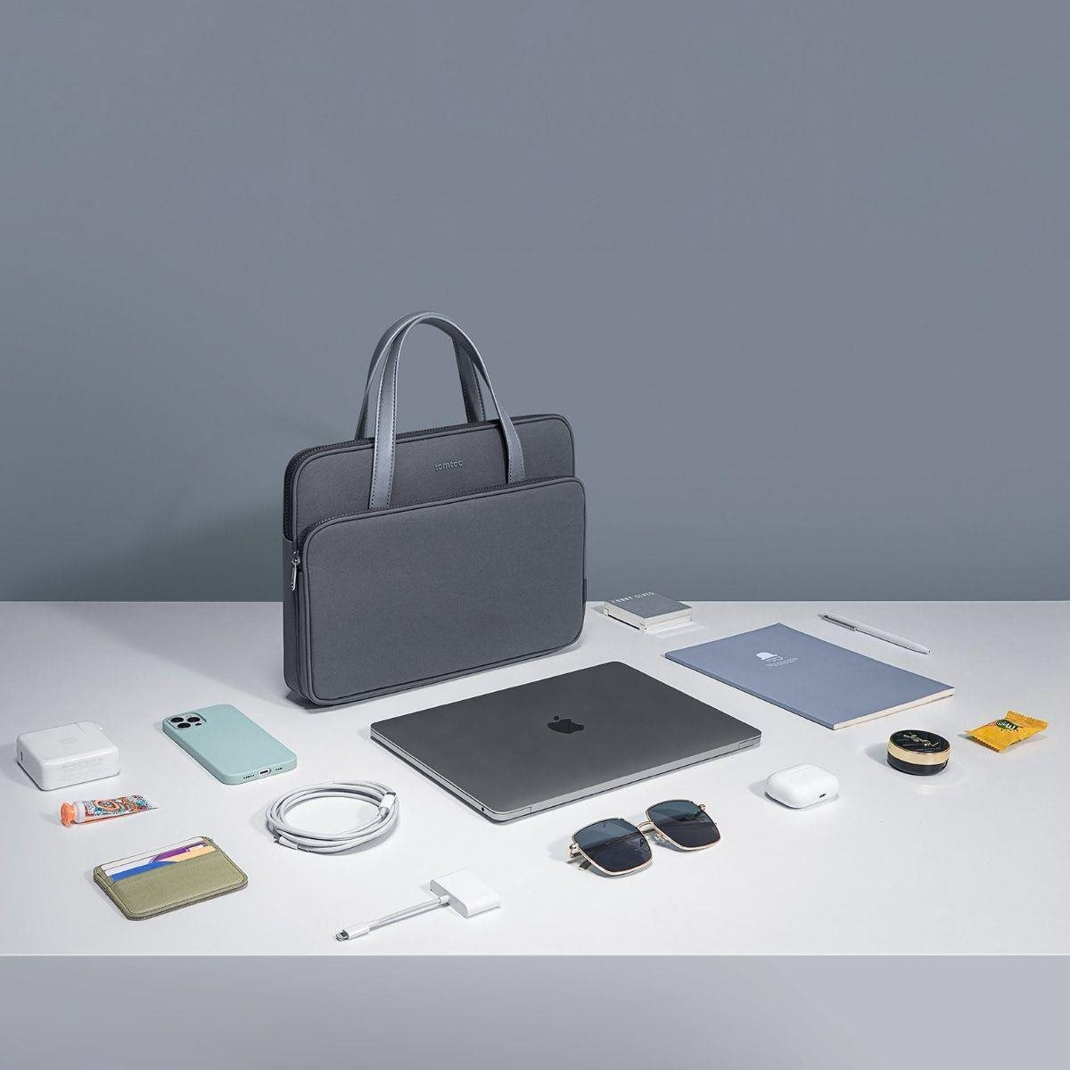 tomtoc Premium Briefcase – 14" MacBook Pro (2021), šedá