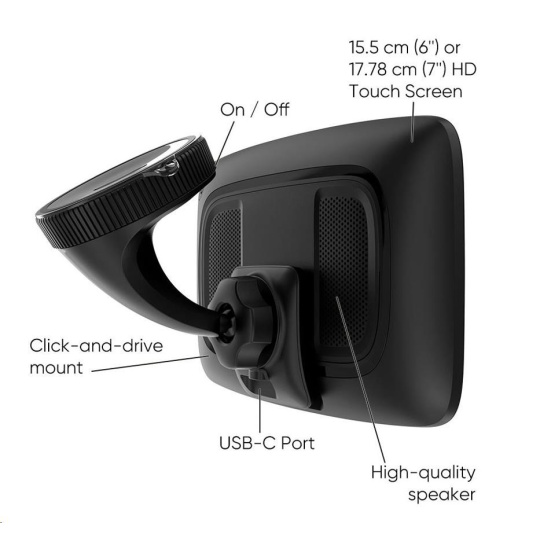 Prezrite si svoju trasu vo veľmi vysokých detailoch na 6" / 7" dotykovom displeji, ktorý sa môže chváliť najlepším rozlíšením na trhu. A vďaka ovládaniu pomocou hlasových príkazov môžete zariadenie TomTom GO Superior ovládať bez toho, aby ste dali ruky z volantu. Jednoducho použiteľný držiak Click-and-Drive navyše drží navigačné zariadenie bezpečne na mieste.