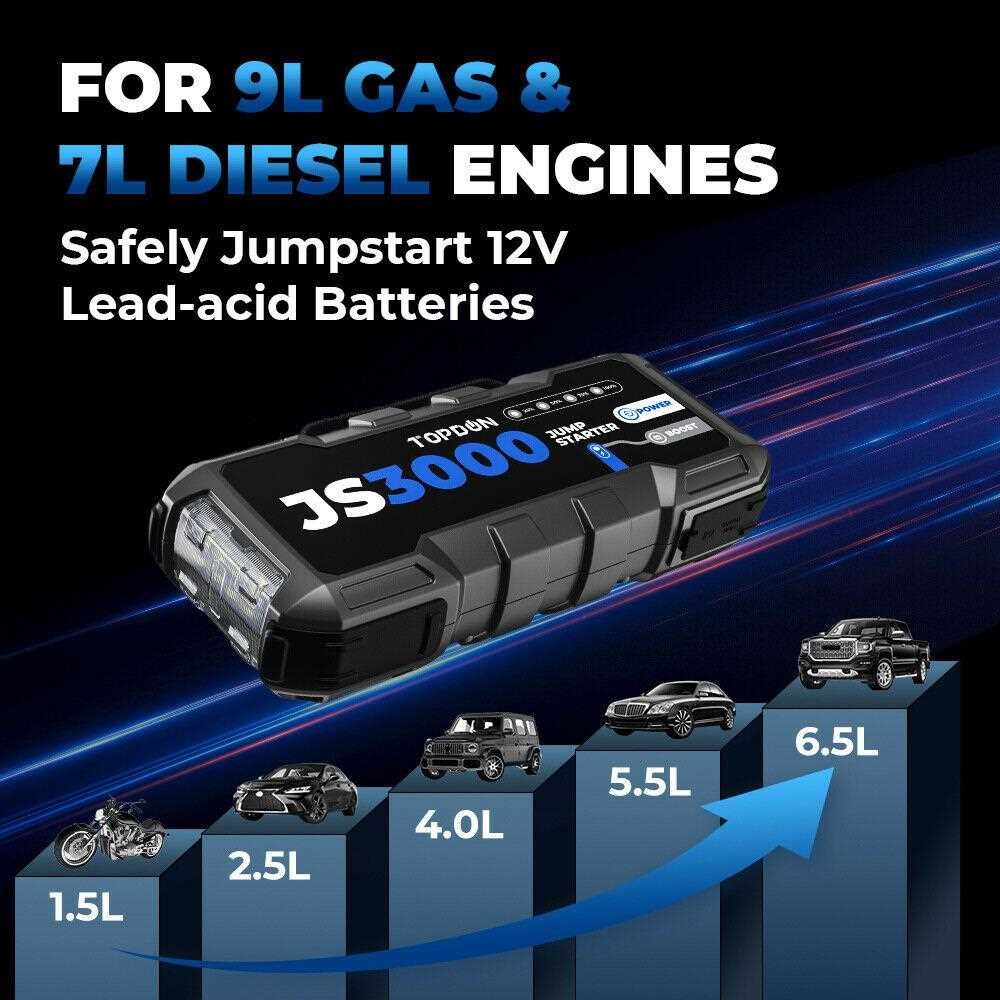 S úžasným výkonom 3000A nastartuje Váš dopravný prostriedok pri vybitej batérii až do maximálneho objemu 7.0L pre dieselové motory, max 9.0L pre benzínové motory a to opakovane v závislosti od objemu Vášho motora. Tento car jump startér môžete používať na pohotovostné štarty nielen vozidiel, ale aj motocyklov, skútrov, lodí, štvordverových áut, snežných skútrov, karavanov, osobných a nákladných vozidiel s 12V okruhom.
