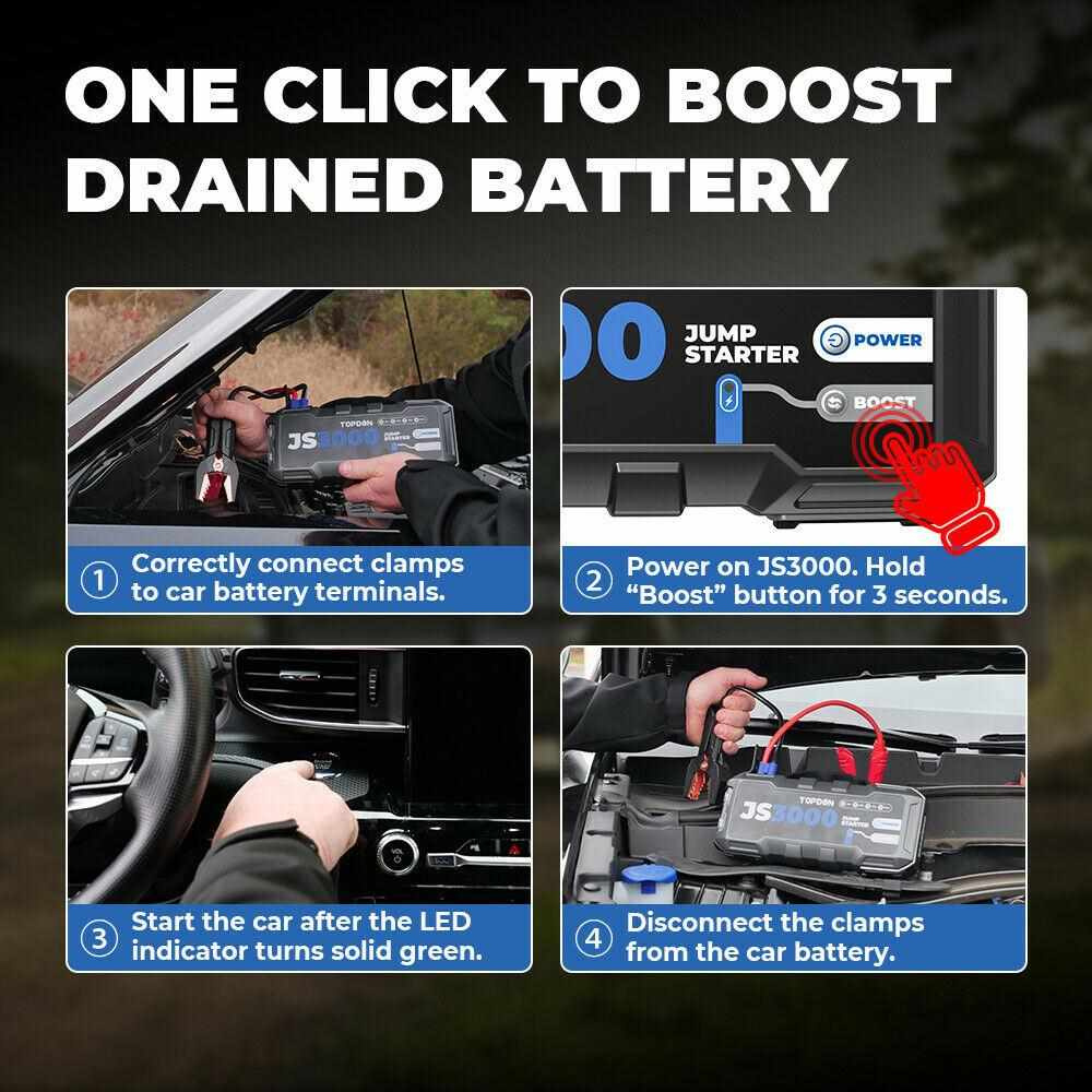 S úžasným výkonom 3000A nastartuje Váš dopravný prostriedok pri vybitej batérii až do maximálneho objemu 7.0L pre naftové motory a 9.0L pre benzínové motory a to opakovane v závislosti od objemu Vášho motora. Tento car jump startér môžete používať pre pohotovostné štarty nielen vozidiel, ale aj motocyklov, skútrov, lodí, štvordverových áut, snehových skútrov, karavanov, osobných i nákladných vozidiel s 12V okruhom, atď.