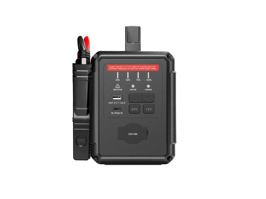V4000 HD s bezpečnou LiFePO4 baterie s kapacitou 64 000 mAh (204,8 Wh). Ta poskytuje dostatek energie pro opakované starty – až 60 startů u 12V vozidel nebo 30 startů u 24V systémů na jedno nabití.