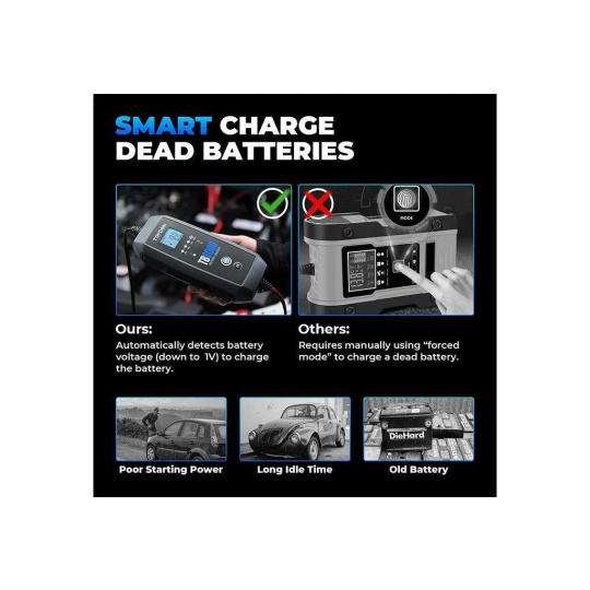 9stupňový systém inteligentného nabíjania TB8000 poskytuje používateľom špičkovú technológiu, ktorá automaticky identifikuje stav batérie a dodáva najvhodnejší prúd. S týmto zariadením sa už nemusíte obávať poškodenia batérií!