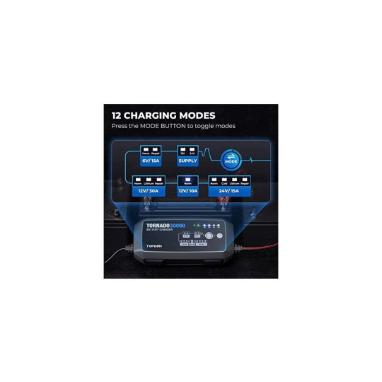 S jej 9stupňovým, inteligentným nabíjaním a s 12 nabíjacími režimami poskytuje TORNADO30000 bezkonkurenčnú možnosť nabíjania a ochrany pre používateľa.