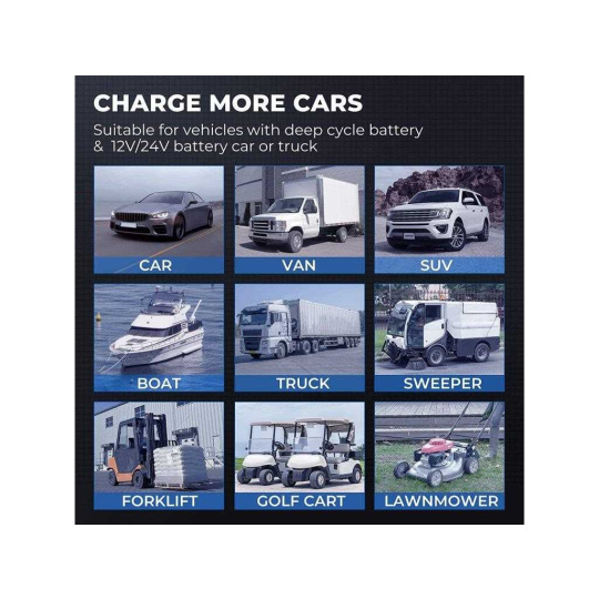 Vďaka podpore 6V, 12V a 24V batérií je toto nabíjačka vhodná pre viac typov batérií, vrátane AGM, LI WET, GEL, MF CAL a EFB!