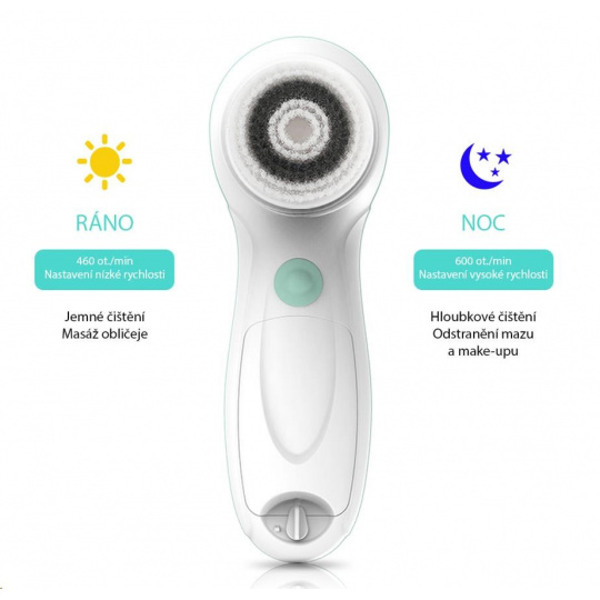 - 2 pracovné rýchlosti - nízka rýchlosť pre jemné čistenie a vysoká rýchlosť pre hĺbkové čistenie.