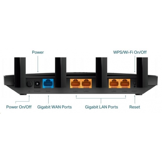 | Ethernetové porty | 1× Gigabit WAN port 4× Gigabit LAN porty |