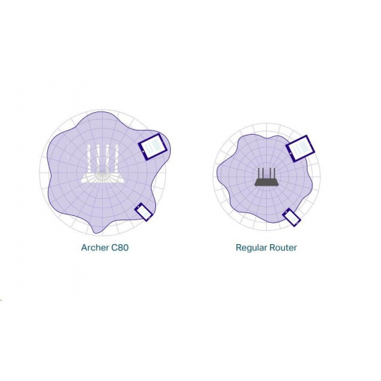 Archer C80 poskytuje vysoko výkonné a dostupné domáce Wi-Fi s celkovou rýchlosťou až 1900 Mb/s. Spracováva jednoduché úlohy, ako je odosielanie e-mailov alebo prehliadanie webu v pásme 2,4 GHz a úlohy náročné na šírku pásma, ako sú online hry alebo streamovanie v rozlíšení 4K/8K UHD v pásme 5 GHz - všetko bez zápedov.